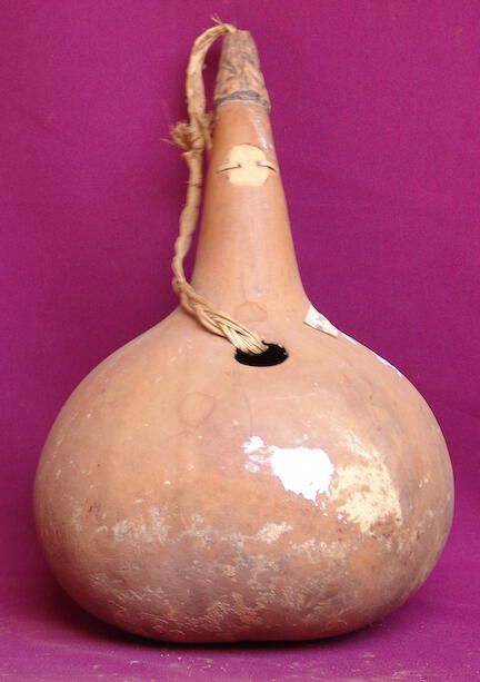 Collections Collections Go back Container Object/Artifact Description Calabash with three holes, one has been plugged and stitched. Has a braided raffia handle attached at the top and through one of the holes in the side. PDF Viewer Close × Profile Viewer Close × Entry/Object ID2014.01.320ContextUsed to store seedsDimensionsHeight42 cmWidth26 cmDimension NotesH: 42 cm W: 26 cmMaterialsMaterialCalabashraffia fiber